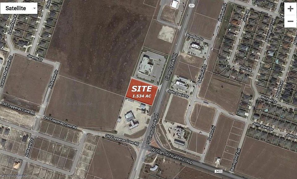 Excellent lot with great visibility along a busy stretch of Clear Creek Rd. Located near the busy intersection of Clear Creek Rd (SH 201) and W Stan Schlueter Loop (FM 3470). Permitted site plan and building plans available.FEMA - Unknown Restrictions: Yes