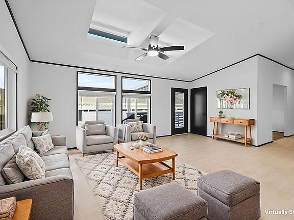 2025 Manufactured Home in Creekside Estates 55+ Park. This gorgeous 2025 Silvercrest home with mountain views has many upgrades w/ 2/2, 1350 sq.ft PLUS an office/bonus room. All appliances SS, generous island in kitchen w/ attractive pendant lighting, & white shaker cabinets w/ soft close doors. The counters throughout the home are a beautiful Corian hard surface amenity. You'll love the beautiful thick vinyl plank flooring and upgraded blinds in this lovely home. Striking living room ceiling architecture w/ ceiling fan. Primary bdrm has walk-in closet w/ stunning bathroom boasting tiled shower & lots of storage. This home also has natural gas heating, gas water heater & gas range!!! You'll love the double trex deck to enjoy family & friends outdoors! Enjoy the new clubhouse w/ huge reception room, all inclusive kitchen, fitness center, pool, new billiard table & even an opportunity to have your hair or nails done! Come see.... you decide! Call for full amenity list.