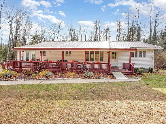 Discover peaceful Northern Michigan in this well-kept home located within the Lakes of the Green Association—a completely private development offering shared access to two private lakes, boat launches, a park, and a campground. Only members and their guests are permitted, providing an added sense of privacy and exclusivity. Unlike an HOA, the low $200/year association fee covers year-round road maintenance and upkeep of the lakes. This comfortable 2-bedroom, 1.5-bath home sits on 10.60 acres, giving you plenty of space to spread out and enjoy the outdoors. An additional room currently set up as an office gives you extra space that can easily be used for whatever fits your needs. A bright 12x19 three-season room and a large covered front porch offer great spaces to relax and enjoy the views! The south edge of the property borders the Huron National Forest, making it easy to head out for hiking, hunting, or exploring. A handy 30x40 pole barn with a woodstove offers great storage or a warm spot to tinker on projects. The land is full of wildlife—it's common to see deer, turkeys, and bear on the property and even right in the back yard! This one won't last long, schedule your showing today!