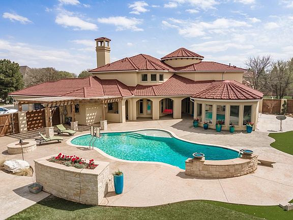 Have you considered a castle for your King or Queen? Explore this possibility! This Mediterranian style home is located on a corner in a very unique and special place in Lubbock called The Falls at Suncrest. There is just nothing like it. The location is perfect! Very little traffic allows lots of privacy for your family. You'll be within walking distance to the fabulous Las Brisas Steakhouse, club member tennis courts and be moments away from the convenient, all new HEB grocery store. Upon entering the circular, 27 foot high ceiling, foyer, you'll have access to the dining room, the iron-railing stairs to upstairs, the welcoming family den, the master bedroom and the bookshelf access to the secluded, private, upstairs office for your undisturbed work area. You'll have to see it all! The large back yard with artificial turf and fabulous, fountain fed, saltwater pool is ready for lots more fun with your family and your two and four legged friend events. See it now!