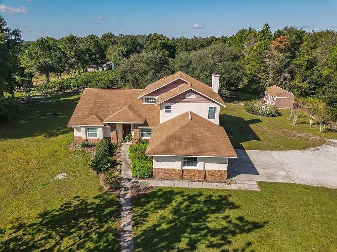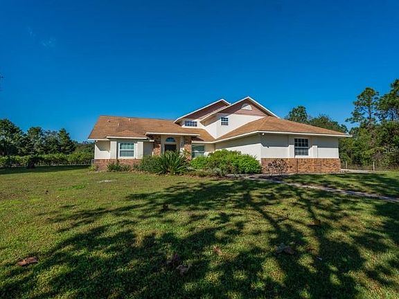This is the exceptional mini ranch you have been searching for! With 9.59 acres in a private and peaceful location yet only minutes to quaint Mount Dora with all its restaurants and shopping. Awesome home with 6 bedrooms and 4 baths that offers your family and guests plenty of room to roam both inside and out. This beautiful home has a formal living room and cozy family room with a wood burning fireplace. If your wish is plenty of storage you will be amazed with the huge walk-in pantry and the fabulous laundry craft room, even storage under the stairs. The eat-in kitchen provides plenty of space for the holidays and those special family gatherings. This property will more than meet the needs of any horse animal lover or avid gardener. An impressive staircase is the centerpiece of the home that leads to 4 bedrooms on the second floor which even includes a laundry shoot! Your spacious master bedroom is located on the first floor along with a guest room and an office study. This property has two wells, two septic tanks and 2 water heaters. Per seller: A C units replaced in approx 2018 (downstairs) and 2021 (upstairs). Septics serviced in 2021. Windows and some doors replaced in 2014. Different kinds of fruit trees on the property including oranges, tangerines and grapefruitThere really isn't anything else you could desire to complete your perfect homestead that feels like the country but literally minutes from everything you need.