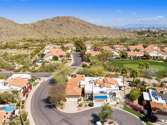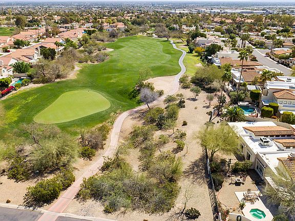 HugePrice Reduction!!! Excellent Golf Course Lot has the views but far enough away to be private & very few if any golf balls*Corner lot*Mountain Views*Home is a block away from South Mtn Park*Private In Ground Heated Spa recently renovated, New Stainless Steel Fridge*Multiple Patio Areas*Wood Shutters*Tile Floors Through-out*Vaulted Ceilings*Newer Heat Pump*Split Bdrm Plan*3rd Bdrm Can be Den or Bdrm*Nicely landscaped*Community pools & spas*