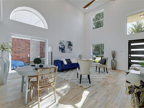 Fantastic home in great location priced to sell. 3-bedroom, 2-bath home with open floor plan and high ceilings. Interior features include light wood flooring, large windows providing natural light, and a spacious living area. The kitchen offers white cabinetry, butcher-block countertops, stainless steel appliances, open shelving, and vent hood. Bathrooms include modern vanities, updated fixtures, designer lighting, and a walk-in shower with tile surround. Bedrooms offer ample space and closet storage. Exterior features include a fenced backyard with covered patio, stone seating area, and mature trees. Additional features include a two-car garage and covered front entry. Property offers convenient access to shopping, dining, and major roadways.