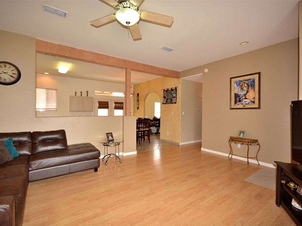 Well maintained BT Home, built in 2003. 3 bedrooms + a bonus room that can be used as an office, exercise room or converted back into a 4th bedroom! Tile in the kitchen, bonus room, bathrooms, & laundry room; laminate floors in the living room & hallway; & new carpet in the bedrooms. New paint, 2-car garage, evaporative cooler, & a wonderful, large portal in the backyard. Good sized backyard & a side yard as well. Wonderful home that's move-in ready!