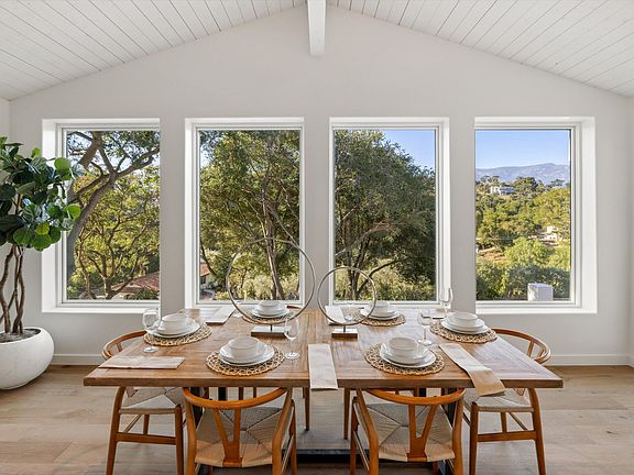 Villa La Soledad,Hope Ranch. Peaceful Simplicity for Everyday Living yet ready to unleash Your Inner Host for unforgetable gatherings Under the Stars. The expansive living space has 4 bedrooms plus 2 offices, formal combined living & dining room with windows to the world, fireplace, catherdral ceilings & steps out to the 2 balconies. The huge family enjoyment room. opens to the large patios The Primary Suite welcomes the outdoors in with privacy, has soaring ceilings, a soothing fireplace, spa bathroom, walk-in closet & balcony looking over the grounds. The privte 2 bdem/2bath guest house opens through accordian doors to the stunning gardens & Olive Tree grove. The property has a grand gated entrance & an abundance of parking including the 4 car garage, 1 bay for tall van parking.