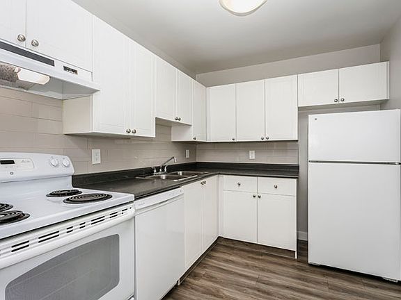 Kitchen with appliancesAmple cabinet spaceIn-suite storageWell-kept low-rise buildingsLandscaped groundsLarge shared yard spaceCarpeted floors