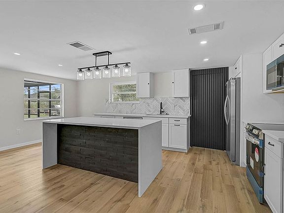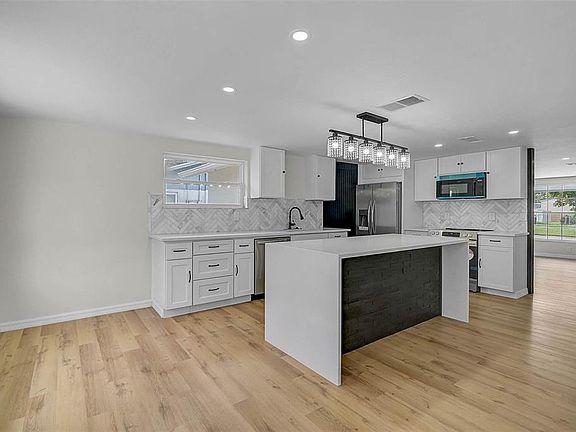 Covered lanaiIn-ground poolRemodeled bathroomsSleek cabinetryBright open layoutStunning modern kitchenNew flooring