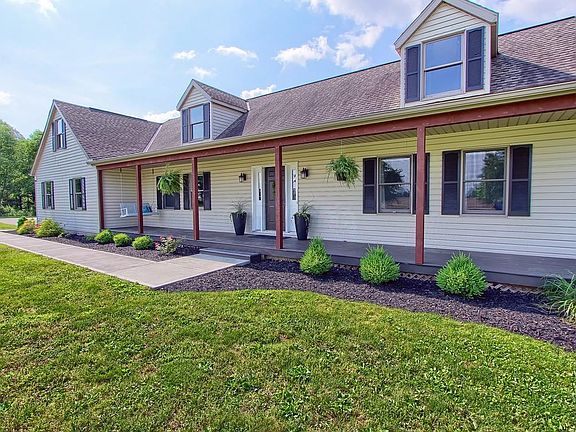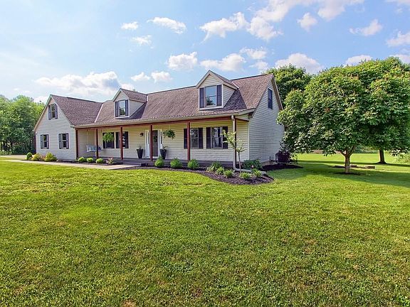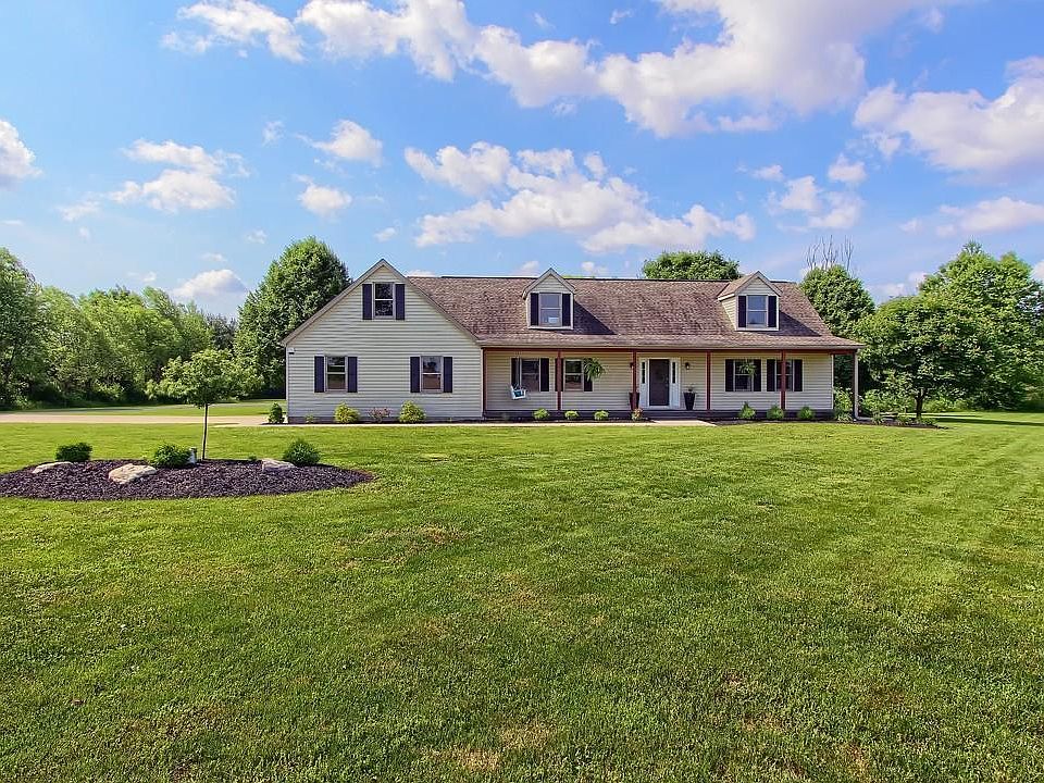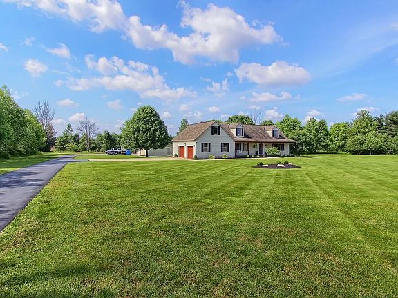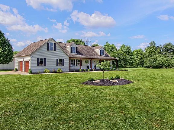Pics are in!! Beautiful 2275 Sq Ft, 3 BedRm 3 bath Cape Cod w/ 2 car attached finished Garage on 5.01 partially treed acres with Detached 27x36 Garage w/ half bath, concrete floor, electric, w/attached 24x27 3 sided car port, easy access to St Rt 23. Country property with easy access to City Conveniences. First Floor Master Bedroom w/ private full bath, Updated White & Bright Kitchen with Large Eating Area open to Living Rm & Back Deck w/Sunsetter Elect Awning. Kitchen features Quartz and Granite Counter tops, marble tile back splash, reverse osmosis drinking water, Stainless appliances. New Heat Pump/Furance/AC Nov 2018, Well Pump System, 2017/2018, First Floor all new Carpet Paint fall of 2017, Rm above garage not included in Sq Ft. Bonus Room!!