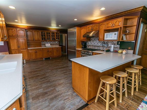 Beautiful spacious 5 bedroom, 5 bath home w/over 6600 sq. ft. of living space. Large eat-in-kitchen w/custom Hickory cabinets, Corian countertops, breakfast bar & Newer Thermador stainless steel appliances. Enjoy entertaining in either your Great Room or Family Room which each boasts a Fireplace and are generous sizes w/wood floors. Owners Suite w/remodeled Owners bath w/large shower w/rain head, body sprays & hand held, Jacuzzi tub and walk-in closet. 2nd bedroom is also a large size on the 1st floor w/wood floors. 3 bedrooms up plus a full bath. Lower level offers another Family Room w/wood burning FP, Full eat-in kitchen, Workout Room, Office & loads of storage. Enjoy relaxing in your private backyard w/20' x 44' inground heated pool (Pump, filter & heater 2yrs. old), Outdoor Pavilion w/full lighting & gas FP and a very lg. deck. Home has a detached 3 car garage w/water, electric, gas plus a shed. The attached 2 car garage has a 220 line, heat & cable. This home has 3 zones. New Roof in 2019 (tear off). Award winning Brecksville/Broadview Hts School District. Close to Metro Parks, I77, I90, I480, I76, I80, I71, Downtown Cleveland, Cleveland Hopkins International Airport and much more.