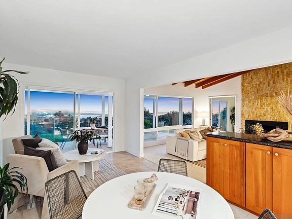 VIEWS! VIEWS! VIEWS! Every so often a home arrives that simply feels right. Perched high above Mission Bay at the end of a quiet cul-de-sac, this quintessential mid-century offers unobstructed west-facing panoramic views from La Jolla to Point Loma, Coronado and the Los Coronados Islands in Mexico. Enjoy postcard sunsets over the bay, ocean and SeaWorld’s fireworks from the comfort of home. Inside, a large, light-filled open plan centers on a vaulted wood ceiling and a wood-burning tumbled-marble fireplace; wide picture windows and sliders frame the view and invite easy indoor-outdoor living. With 5+ bedrooms and 3 baths on nearly a quarter acre, there’s space to live, host and grow. Move right in or reimagine to your heart’s desire; the generous grounds offer room for expansion, pool or future ADU. Quiet, private and sun-splashed, it delivers the hard-to-find trio: Orientation, Outlook and Setting…on what is the neighborhood’s best location and lot. Minutes to beaches, Liberty Station, downtown, the airport and UCSD. A once-in-a-generation view opportunity.