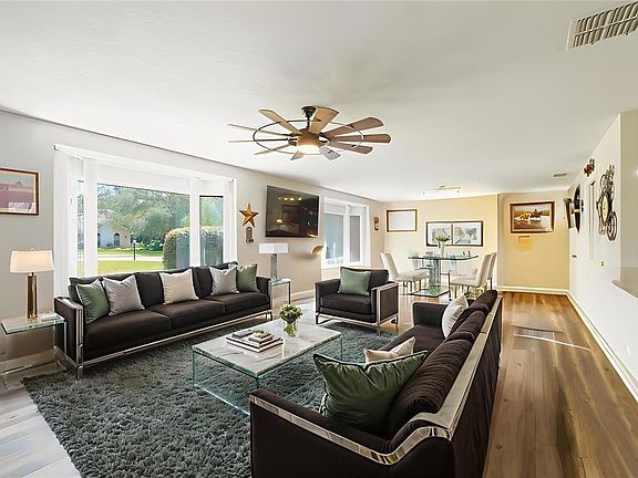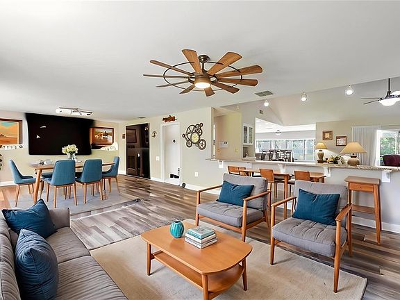 MOTHER IN LAW SUITE...FULLY REMODELED...NO REAR NEIGHBORS...NEW AC UNIT...NEW APPLIANCES...This home truly has it all — beautifully remodeled, move-in ready, and loaded with upgrades! Featuring 5 bedrooms, 4 bathrooms, an oversized 3-car garage, and a private pool, it even includes a full mother-in-law suite. Sitting on over half an acre in the highly sought-after, gated community of Lake in the Woods, this home offers privacy and space with a tree-lined backyard and no rear neighbors. Inside, the open floor plan with high ceilings, big windows, and sliders overlooking the pool makes the home bright and welcoming. The kitchen has been fully updated with granite countertops, stainless steel appliances, and a large breakfast bar that flows into the family room and dinette. The formal living and dining rooms are currently used as a bar and game room — perfect for entertaining — but can easily be customized for your needs. The primary suite is split from the in-law suite for added privacy. Outside, you’ll enjoy massive covered lanai, a resurfaced pool with new screen for the enclosure, and an oversized driveway that can fit nine cars. Community amenities include a 24/7 guarded gate, fishing lake, tennis and pickleball courts, playground, dog park, and more. Conveniently located near shops, restaurants, hospitals, and outdoor adventures like Weeki Wachee Springs and Pine Island. Recent updates include new ACs (2024), new flooring, new lighting, new paint, and so much more. This is a rare opportunity in one of the area’s most desirable neighborhoods — schedule your showing today!