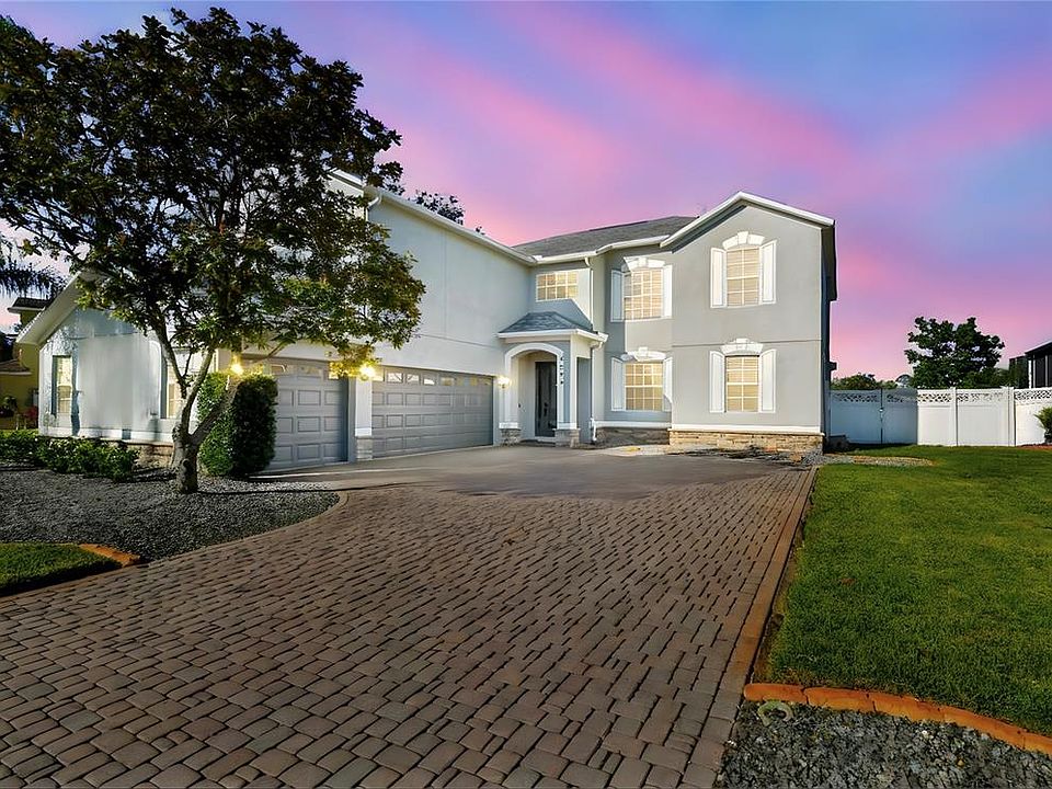 Welcome to your dream home on Walnut Ridge! This very well maintained, Saltwater Pool home overlooks a relaxing pond, offers 5-bedrooms, 3-bathrooms and combines luxury, comfort, and modern smart-home living. Nestled on a quiet street, with no front or rear neighbors, with mature landscaping, this elegant property offers the perfect blend of sophistication and functionality — ideal for families and entertaining alike. NO CDD and Low HOA Fees. Spacious layout, including a downstairs bedroom with bath access for guests or multi-generational living. Expansive primary suite with additional sitting room/office, oversized walk-in closet, and spa-style bath featuring a soaking tub and a double vanity. Football games, parties and family game nights are a must in the large bonus/game room — perfect for a home theater, gym, or playroom. Gourmet kitchen with granite countertops, separate Butler Bar, and Samsung Chef Collection Smart Appliances, including a double oven flat-top stove, and oversized refrigerator. Eat-in kitchen and formal dining room offers multiple areas for dining for larger families and holiday gatherings. Bright Smart LED lighting throughout, solid surface flooring on most of the first floor and a convenient first floor bedroom. Lots of natural lighting throughout home, via oversized front and 8' rear sliding doors . Enjoy a large, screened paved rear lanai that offers lots of poolside space to have fun and relaxation. Separate fenced in grass area, complete with smart irrigation system is perfect for kids and pets to spread out. Listen to your favorite music through the audio system (OneLink), via Alexa and control your HVAC with Nest thermostats. Newer front-load washer and dryer included. Some other home features to note are; New roof, New exterior paint, newer hot water heater, gutters, 3-car garage, large paved driveway, alarm system, smart home integration, and new water softener. Lake Talia is a tranquil neighborhood, this home offers peace and privacy while remaining close to shopping, dining, great schools, and parks. Enjoy stunning pond views, beautiful sunsets, and the perfect Florida lifestyle right from your backyard. 12 Month Home Warranty Included! Call today to schedule your showing.