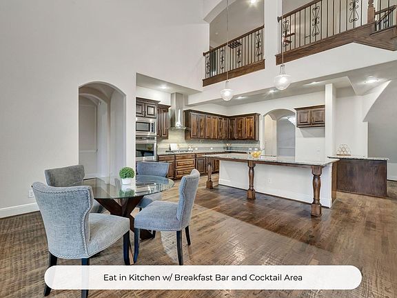 Step into a light-filled open layout where a dramatic dual staircase and sparkling chandelier set the tone for elegance. The main level includes a formal dining room, a flexible office space, and two guest suites with private bathsperfect for multi-generational living. The expansive living room showcases soaring two-story windows and flows seamlessly into a gourmet kitchen equipped with granite countertops, stainless steel appliances, a gas cooktop, and an oversized island.