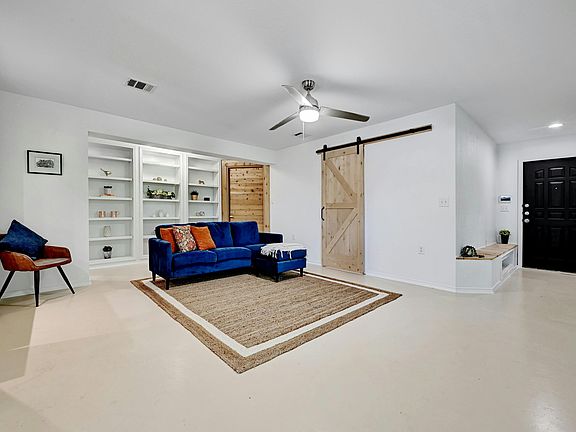 Welcome to your charming single-story Southeast Austin home. Tucked away on a quiet side street, this home features an open concept, connecting the living, kitchen, and dining areas perfect for entertaining. Fresh paint and newly resealed concrete flooring (2024) throughout. A large kitchen with eat-in dining overlooks the spacious living room. The primary suite is spacious with a large walk-in closet and a separate shower and soaking tub.