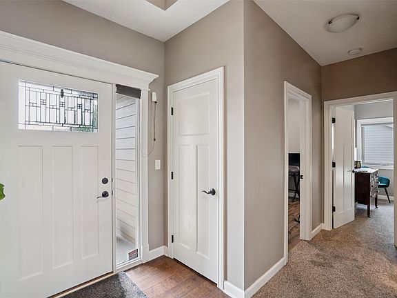 Beautiful 5 BR, 3 BA ranch in Otter Creek! Open-concept entry flows into the living room with fireplace and a chef's kitchen featuring hardwood floors, granite countertops, large center island, gas range, bronze hardware, and a coffee bar/desk area. Dining area opens to a covered deck with shades, overlooking the fenced yard and sparkling pond. The spacious primary suite offers a walk-in closet and spa-like bath with double vanity and tiled shower. Two additional bedrooms and a full bath complete the main level, along with a laundry/mudroom with built-in lockers. The daylight lower level boasts a large family room with walk-up wet bar, two bedrooms, full bath, workout area, and abundant storage. Nestled on over 1/3 acre with professional landscaping, this home combines comfort, space, and style.