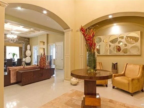 Discover this stunning luxury home featuring a unique stucco and stone exterior with a classic clay tile roof. Spanning over 6,000+ sqft, it offers 5 spacious bedrooms and 6 elegantly designed baths, perfect for comfort and convenience. Enjoy ample entertainment space with three living areas, two dining areas, and a covered patio overlooking a spectacular in-ground pool. The beautifully landscaped exterior enhances curb appeal. Inside, decorative high ceilings, a luxurious shower-tub combo, and granite countertops add elegance. Flooring features rich hardwood and stylish porcelain tile, while custom drapes provide privacy and light. Conveys with a solid offer: Electric Water Heater, programmable thermostat, double oven, refrigerator, stove/range, and a laundry room with washer/dryer connections. A wet/dry bar and three-car garage complete this exquisite package. This home truly offers unmatched luxury and features to fulfill your every need. Don’t miss out on this dream home!