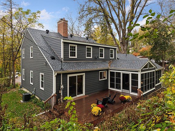Picturesque Two-Story residence nestled on a private, wooded .57 acre cul-de-sac site. Peaceful Bassett Creek neighborhood near Wirth Park! Beautiful renovations inside and out sparkle, including newer exterior, windows and roof, stunning gourmet kitchen with 7’ island opening to the delightful 3-season porch and large deck. Four generous bedrooms up, gorgeous primary suite with fireplace, three fabulous baths. Hard to find spacious 5th bedroom on the main level plus ¾ bath, perfect for main level guests, home office or media room. Even a main floor laundry! Hardwoods throughout, handsome living room with gas fireplace and a true formal dining room + informal dining in the kitchen. Bright, lower-level recreation/game rooms plus huge workshop with handy secondary staircase to the main level attached garage. Play and bike out front in the large cul-de-sac; kids enjoy the nearby elementary playground after hours. Easy access to Wirth trails and downtown. Absolutely turn-key!