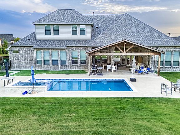 Welcome to a residence that embodies prestige, comfort, and craftsmanship—almost like new, yet filled with timeless character and thoughtful upgrades. This impressive home offers 5 bedrooms, 5 full baths, impeccably designed living space, all set on a serene 1.563-acre lot. It combines the warmth of a modern home with the details today’s buyers desire most. Step inside to find rich wood flooring throughout and elegant box ceilings that elevate the home’s style and presence. The open floor plan flows seamlessly into a gourmet kitchen featuring top-level quartz countertops, a commercial-grade 6-burner gas cooktop with professional vent, stainless appliances, a generous walk-in pantry, and abundant cabinetry—ideal for the passionate chef or entertainer. The laundry room includes space for a second full-size refrigerator. Each of the five full bathrooms is finished with quartz counters and spa-like details, offering a retreat for family and guests alike. The luxurious primary suite is spacious and serene, complete with a private retreat perfect for an office, exercise room, or nursery. All bedrooms include walk-in closets, ensuring ample storage throughout. Enjoy the best of indoor-outdoor living with a sparkling pool featuring a baja ledge and built-in setup for a volleyball net, complemented by a relaxing spa. Large trees line the rear of the property, ensuring privacy and a picturesque backdrop for entertaining or quiet evenings. The covered patio includes built-in speakers and a gas line ready for your dream outdoor kitchen. Inside, the family room also offers built-in speakers, while the media room is pre-wired for surround sound. The loft is pre-wired for surround sound and an overhead projector, making it ideal for movie nights or gaming. Car enthusiasts will appreciate the oversized 4-car garage with epoxy flooring and overhead storage—both stylish and practical. Located within highly acclaimed Plano ISD, this home feeds into some of the top schools in Texas.