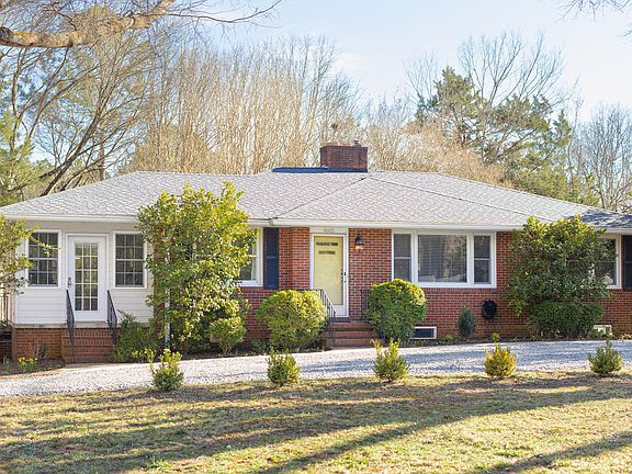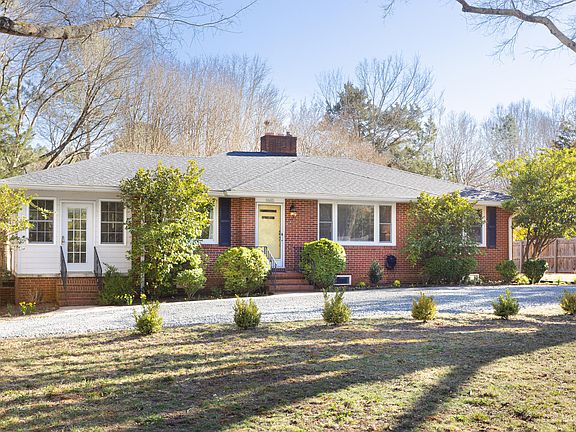 The charm of the countryside, just minutes from Durham and Chapel Hill. This well-loved, 1950's ranch sits on an acre of land, perched high on a ridge and set back from the road. A long, semi-circular driveway welcomes you home. Inside, natural light pours into the living room and east-facing sunroom, currently the sunniest office imaginable. Cooks will appreciate the attention to details in the updated kitchen. The owner's bedroom features an en suite bathroom and French doors which open onto a new deck overlooking the large backyard. The second, beautifully paneled bedroom is currently used as an office. The spacious lower level offers flexible living, with a large family room/den and workout space, plus generous amounts of storage. A third bedroom with a full bathroom makes an ideal guest suite. The one-car garage is perfect for hobbyists and gardeners. Recent updates include recessed lighting and light fixtures, new hardware, new window blinds, a remodeled bathroom, new roof, new dishwasher, new hot water heater, new deck, and more!