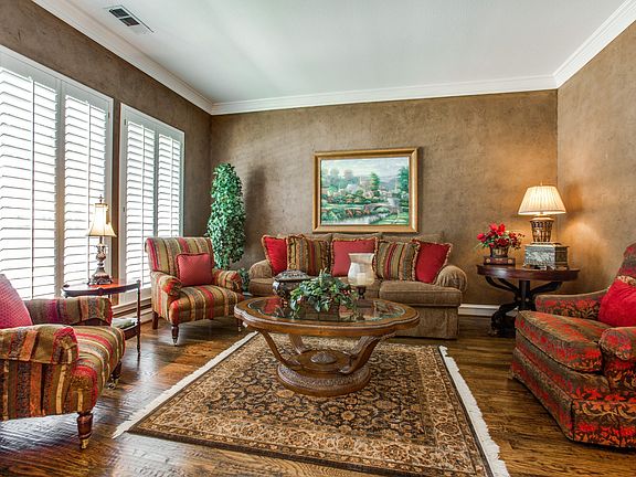 STUNNING home in West Plano with all the bells & whistles! Awesome kitchen featuring a wine fridge, double ovens, remodeled cabinetry in tea stain finish, an island breakfast bar and a walk-in pantry. Gorgeous wood floors in the living areas and Plantation shutters throughout. Spacious master bedroom overlooks the Pebbletec pool and features a remodeled bath with a rain shower faucet and dual vanities. Study located on the main level. Game room and 3 large bedrooms on the second level. You will love the covered outdoor living space all year long!