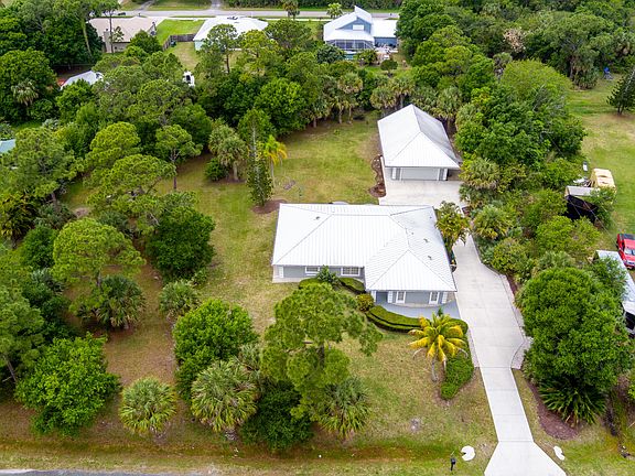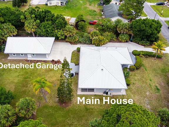 Very Desirable Upgraded Home with MANY ''extra'' features PLUS 2016 yr built Detached Garage, Workshop & Air-Conditioned Loft. Storage Galore on 1.01 acres. Bring your TOYS!Main House upgraded to 2016 building codes, Metal Roof, Attic with Icynene Insulation, Extra Hurricane Straps, 2019 HVAC w/ WiFi Thermostat, Tankless HWH, Impact Guest bath & Office Doors. Patio Shade Roll-downs & Exterior Landscape Lights.Detached Garage built 2016. 60 Amp Exterior Wired for new owner to choose type Plug: RV or EV charger. HVAC 2016, Separate A/C Workshop has three interior 20 amp plugs and upstairs Loft for Rec/Gym/Play area. LOTS of Storage Area in Loft & Attic.Water Assessment $15K paid in FULL. Water & Gas Connections available. House on Well/2022 Water Softener & Drinking Filtration System. Well Pump replaced 2024. Concrete Septic Pumped 2023. Concrete Driveway upgraded to 6" and 4000psi to withstand heavier vehicles/RV's Trucks/Boats. Flood Insurnace is NOT required on property. Located in the County, no City Taxes. This Home has ALL you've been looking for. The Owners have been fastidious in maintaining and upgrading this Estate. You'll be amazed at ALL it has to offer.