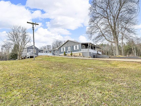 This home has so much space to offer! Mechanicals include a newer panel, owned softener, well pump, furnace #2, and updated windows. New above ground pool in 2024. All Appliances included. Master ensuite with step in shower and walk in closet! 4 additional Large newly carpeted bedrooms. This home has 2 living rooms and a formal dining room area, 2 pellet stoves and 2! pantries. Beautiful outside setting with a large patio area leading to a 3 seasons room just steps away. The Mancave includes furniture, firepit and fridge! The 3 large sheds on the property come complete with zero turn mower and all attachments. Front of the home features a Large full length covered porch to enjoy the wildlife and views of the nearby rolling hills and fields. This Home is a Must see!