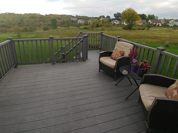Gorgeous Views and Wildlife with City Conveniences! Ideal location adjacent to park and greenspace. With two kitchens, two living rms, 4 bedrooms and 4 baths (incl. two master suites) this home provides limitless options! Level entry, first floor laundry and handicap acc. features. Open concept kitchen/living with new sim. hardwood floors and corian counters. Upgrades incl. Kohler plumbing, solid core doors, crown molding and custom cabinetry. Backyard features prof. landscaping, storage shed, Trexdeck and concrete patio walking out from lower level. Come see the stunning views for yourself!