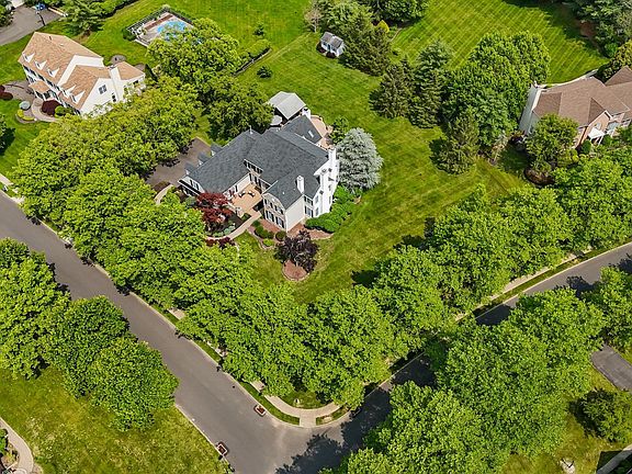 A morning walk around your beautiful neighborhood, past the farmhouse and pond, under established tree canopies, using the extensive sidewalk system…. or your evening bike ride to Hansell Park or Bush Park…. all options for you when you live at this magnificent home in the highly desirable community of Oakleigh Farm in Buckingham Township, Doylestown PA. Customized, updated and ready for the next lucky owners, this home features smart floorplan selections that will delight you throughout. A special inclusion at this home is the main level en-suite bedroom, which is gracious in size with a large closet, a full bathroom, and sliding doors to the deck. The large kitchen with granite counters, stainless steel appliances, five burner gas cooktop, two wall ovens, and tons of cabinets, flows into the inviting family room. There you can spend important relaxation time using the wood burning fireplace with blower and take in the views of the side and back yards. With the laundry room now on the second floor, its original space has become a terrific walk-in pantry – so functional! A private office with wet bar has views of the front yard through handsome plantation shutters, and the back yard can be viewed from two Trex decks that overlook the large, flat, open lot. Both the living room with gas fireplace and dining room offer space for their traditional uses, yet can become areas for homework, music, reading… your imagination is your guide here! The second floor has been reconfigured so all rooms are accessible from the main and back staircases, which created a cozy loft area and second floor laundry room too. The primary bedroom offers a sitting room with gas fireplace, new bathroom with heated floors, large tile shower, soaker tub, two sinks, storage with hidden electric / USB ports, walk-in closet with built-in storge plus two wall closets. One additional en-suite bedroom with full bathroom, two additional bedrooms (one with direct access to the contiguous hall bathroom), and one updated hall bathroom offer great spaces for rest and work. The finished basement is anchored by the custom hand-milled black oak bartop with space for seating, the stone wall, and a barn door separating the family room zone from the home gym zone. A game room and storage area are also available. This beautiful 1.02 acre lot includes a custom-built pavilion featuring infrared heaters in the ceiling and a built-in gas grill, a firepit area, and shed. The side entry three-car garage is just what you would expect in a home of this caliber. Extensive millwork throughout the home adds a layer of elegance. Notable updates include roof, 4 skylights in family room, primary bathroom complete renovation, connected second floor with new loft and laundry room, new half bathroom vanity, mudroom shiplap, new interior doors, and exterior material update. All of this plus Central Bucks School District, access to major highways and public transportation, proximity to highly ranked museums, shopping, dining, and state/local parks. How exciting for the lucky next owners!