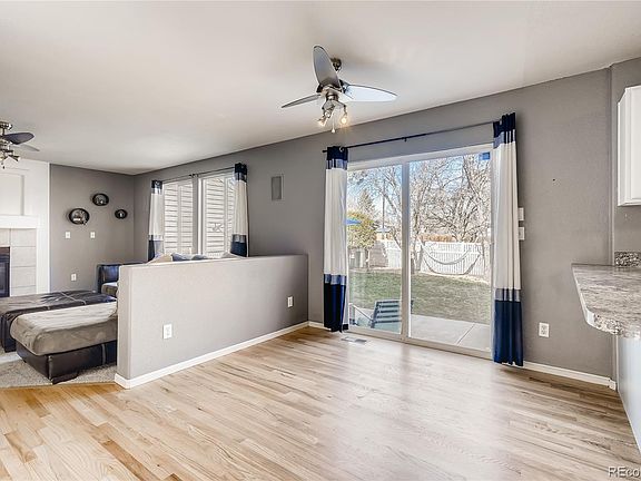 Perfect Location! So close to all Arvada has to offer AND easy commute to Downtown or the beautiful rocky mountains. Step into the bright living room that can serve as a formal dining room too. A tall vaulted ceiling makes it feel so spacious. The kitchen is the perfect size to entertain. The owners have just had the beautiful hardwood floors refinished to SHINE! The microwave is new. The countertops are new. The appliances are all included. The corner walk in pantry adds so much extra storage. The family room is a perfect site line to the kitchen and has a cozy gas fireplace and new carpet. The 1/2 bath is off the entry from the 2 car garage into the family room. Upstairs ( with new carpet) you will find 4 bedrooms, a full bath and a three quarter private bath for the large Master Bedroom. The Master bedroom has a wonderful, tall cathedral ceiling and a nice walk in closet. In the finished basement there is a large playroom, or workout room, or craft room. Your choice to do as YOU! The washer/ dryer closet is located in the basement too. Storage under the stairs and in the crawlspace. The backyard has been recently sodded. It is perfect size to not be too much work, yet great for kids or pets. The patio is a perfect place to grill and entertain during the summer. This Tennyson Park home is a short jaunt to the shops and restaurants at Tennyson as well as Old Arvada. You will love this home.