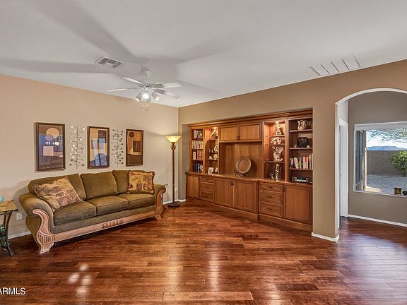 Beautifully maintained, one owner, single level home in the popular community of Anthem West. Desirable, quiet corner lot with no houses behind you. Impressive mountain views and sought-after north-south exposure. Floor plan features a master bedroom suite separate from the other 2 bedrooms. Main living area with wood flooring is open to the living room, dining room and kitchen. This fantastic mountain view home is walking distance to Opportunity Way Park and a short drive to Anthem Community Park, the Outlets at Anthem, Anthem Golf & Country Club and many outdoor recreational areas.