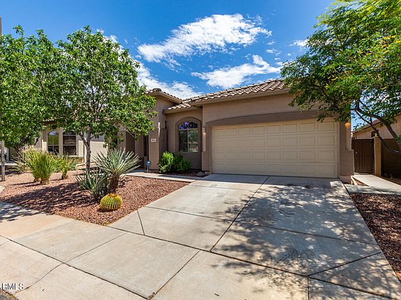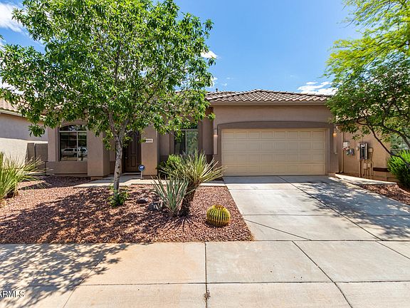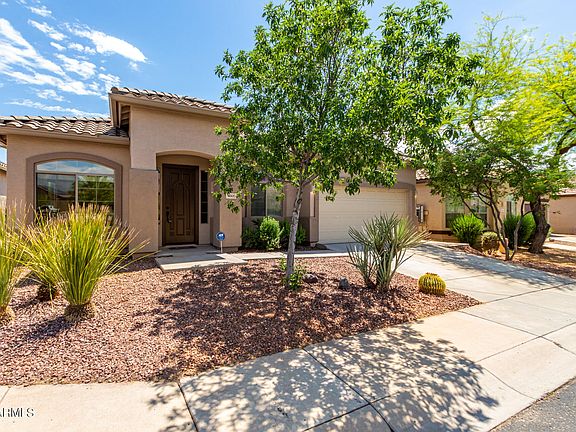 Fall in LOVE with this charming home in the desirable Anthem West! Providing 3 beds, 2 baths, 2-car garage, & a desert landscape. Be greeted by a large living room, perfect for receiving guests! Continue onto the inviting dining/family room that opens to the kitchen, boasting multi-sliding doors merging the inside/outside activities. The impressive kitchen has SS appliances, recessed lighting, a pantry, ample wood cabinetry, & a 2-tiered island w/breakfast bar. Natural light filled the spaces, complemented by neutral paint & wood-look flooring w/plush carpet in bedrooms. Double-door main bedroom features a sitting area and an ensuite with dual sinks, separate tub/shower, & a walk-in closet. Discover the tranquil backyard with an extended covered patio to relax or enjoy BBQ! Move-in ready!