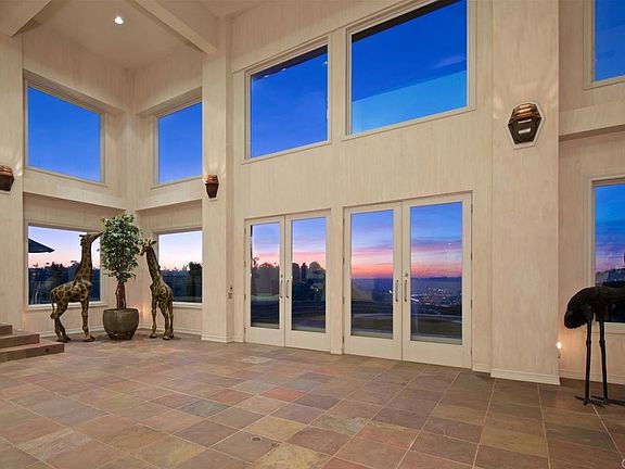 Bankowned. Unique architectural style offers opportunity for an exceptional lifestyle. 8 bedrooms, 11 full baths. 2 fully hardscaped acres with panoramic views of canyon and Mission Valley's Snapdragon Stadium. Detached guest house, fully lite professional tennis and basket ball courts. Other home features include large chef's kitchen, 2 formal dining rooms, 2 full bars, theater, gym, sauna, 4 floor-to-ceiling fireplaces. Home has water damage from leaking roof; and there is moisture intrusion in the detached guest house from debris blocked drainage in retaining wall. Personal property and decor have been removed. Property being sold AS IS. Buyers to satisfy themselves as to square feet and physical condition of property. Bank has no inspections/reports.