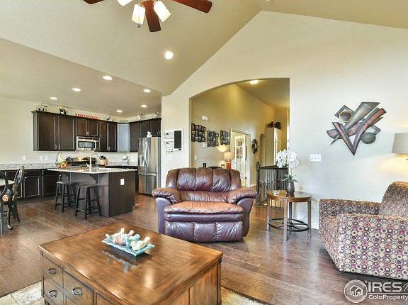 Garden level ranch home w/ 4bed/3bath. Beautifully designed w/ hand scraped hardwood floors, open kitchen w/ an abundance of cabinets, granite, SS appliances, gas range, island & pantry. Formal dining can easily be an office if one prefers. Finished basement for entertaining-large wet bar w/ 2 beverage fridges, wired for surround sound + pool table included. Professionally landscaped & composite deck. Oversized 3 car garage fully insulated. Great location- easy access to I-25!