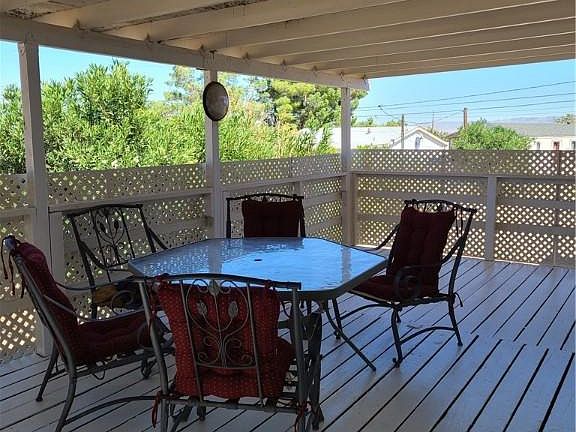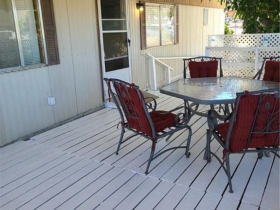 Clean, move-in ready, updated home with split 2 bedroom and 1 and half bath. Property is fully fenced with shade trees, wheelchair accessible with ramp going up to the patio and also to the front door. Spacious living room and open floor plan kitchen. New carpet, swamp cooler and fresh new paint inside. Dining set in the kitchen, washer/dryer, fridge, and patio table set to convey with the property.