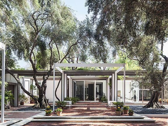 First offering: The Laura & Edward Killingsworth House, 1961. The architect's own home. The houses of John Entenza's Case Study Program set the trajectory for the modern California lifestyle. Killingsworth's contributions, with their perfected delicacy & dramatic scale demonstrated that modern building could convey a sense of elegance & grandeur beyond modern architecture's more egalitarian roots. thus elevating the appeal of modernism from the Masses to the Classes. Nowhere is Killingsworth's conveyance of a modern version of landed gentry classiness better reflected than the house he built himself with his two sons. Contiguous to & once a part of land baron Johnathan Temple's Rancho Los Cerritos, the 7/10 acre property is gated within the confines of the Virginia Country Club, & overlooks the private golf course. High walls secure the grounds. The drama of entry is enhanced with 12ft. tall double doors. Grand scale is carried throughout the structure and deliniated patios.