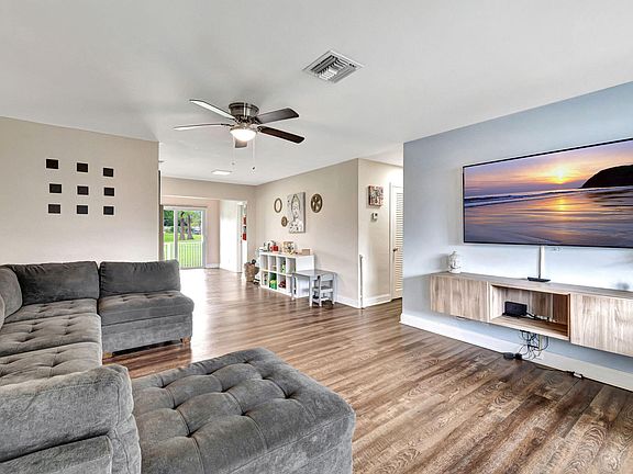 Welcome to your dream home in the all-ages section of Tamarac! This beautifully updated residence offers modern luxury and convenience. Step inside to discover stunning new wood like flooring throughout. The open-concept kitchen is a chef's delight, featuring sleek granite countertops, stainless steel appliances, and a spacious layout perfect for entertaining. The master bathroom has been tastefully updated to provide a serene retreat, while the entire home is protected by hurricane impact windows and doors, offering peace of mind in all weather conditions. Enjoy the ultimate outdoor living experience with a fully fenced yard that backs up to the lush, green golf course. A super low HOA fee covers lawn care, exterior painting & access to the clubhouse and newly renovated pool.