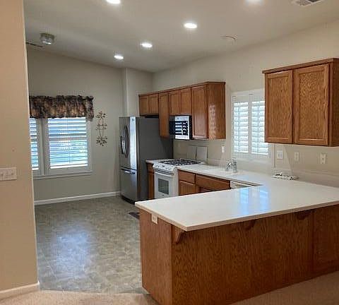 Beautiful 3 bdrm, 2 bath home in excellent turn-key condition located in the prime gated Resident Owned Community. One owner pride is extremely evident as soon as you walk in. Features such as custom plantation blinds, solar screens and window dressings. Refrigerator is included. Kitchen is enhanced by oak cabinets with lower roll-outs and Corian countertops. Community offers security entry, pool, clubhouse and RV parking is available.