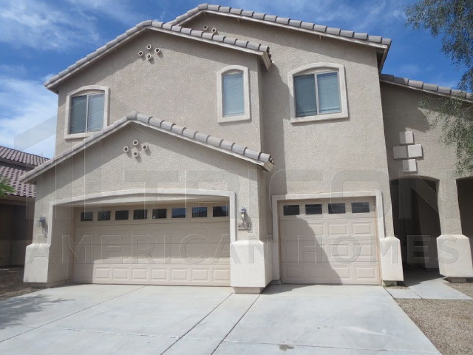 Stunning home with gorgeous hardwood floors and tile throughout the downstairs is located at 46064 W Ranch Rd in Maricopa near Maricopa Road and Bowlin in the community of Maricopa Meadows.!! This 4/3 bath home has 3,508 so much space and really, really nice inside. Formal living room, dining room, family room, kitchen, one bedroom, one full bath, laundry room all downstairs. Fabulous kitchen with gorgeous granite countertops and dark wood cabinetry, a gas stove, refrigerator, microwave and dishwasher, a butler's pantry plus a built in desk!! You'll love the family room with its built ins for the tv, stereo and there is even a space for your favorite vase!! Snuggle up in front of this cozy fireplace on cool Arizona evenings. Also, on the lower level, there is one bedroom also with hardwood floors plus a full bath downstairs. Laundry room located on the lower level also and we provide the washer and dryer. A three car garage and covered patio top of the downstairs. Moving upstairs again on beautiful hardwood stairs, you will find 3 additional bedrooms and 2 full baths. The bedrooms do have carpet. Freshly painted neutral colors not white walls!! The master bedroom is huge. This home is going to go so fast don't wait! Call 844-874-2661 for more information or to schedule a tour.
