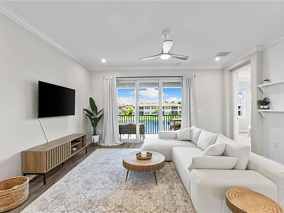 Arboretum, is ideally located in Naples' Bayshore Arts District, adjacent to Naples Botanical Garden, with proximity to the Gulf Coast's best beaches. Resort-style amenities like a sparkling pool surrounded by lounge chairs and umbrellas, a spa, a fire pit social area, a BBQ grilling area, a covered social terrace, a fitness center, and a dog park! Just 5 minutes from 5th Ave South's incredible dining and shopping, Arboretum is also just a short drive from top beaches, and close to premier golf and country clubs. The Seabright floor plan - second floor coach home offers 2 bedrooms, 2 baths and a 1 car garage. Perfect for everyday living or entertaining guests, this bright and airy floor plan includes a beautiful adjacent dining area with direct access to the kitchen featuring an oversized island where you can sit 5-6 people. Three large windows over the stairs brings light through the entire floor. Expansive Great Room with large sliders also brings in additional light. The second bedroom has windows and a glass door out to a private sitting balcony to enjoy your morning or evening. This open floor plan offers optimized living spaces and is perfect for entertaining. Master suite includes lake views an oversized walk in closet, double sink vanity and luxurious walk in shower!