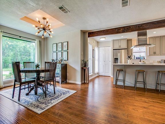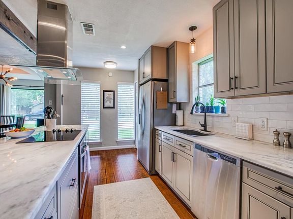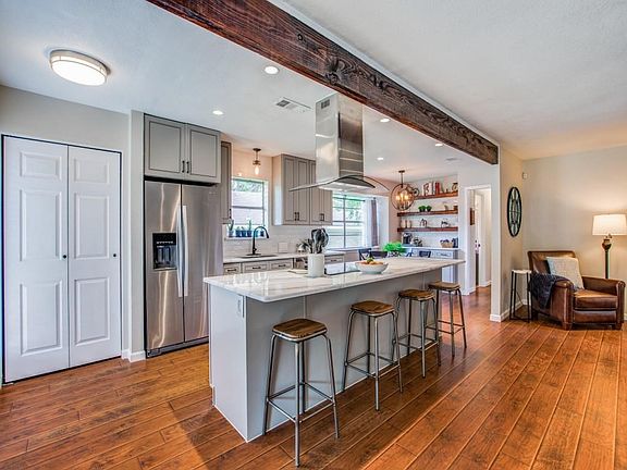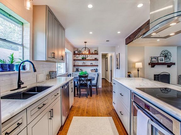 RENOVATED BEAUTY IN BUCKNER TERRACE! You will love this open floorplan with upscale features. Kitchen open to family living with updated cabinets, quartz type counters, built-in breakfast buffet with floating shelves, stainless steel appliances, and wood accents. Four good sized bedrooms with one bedroom split with bath, two bedrooms with a full bath between and on-suite primary bedroom that has luxury bath behind barn door with frameless glass shower, large closet, and quartz type counters. Recent updates: Window treatments, doors to patio with built-in blinds, chimney cap, water heater, and security system with cameras & Ring doorbell. Circle drive in front for added parking. Close access to highways and downtown. 2021-08-13
