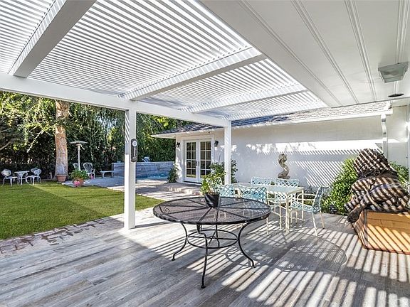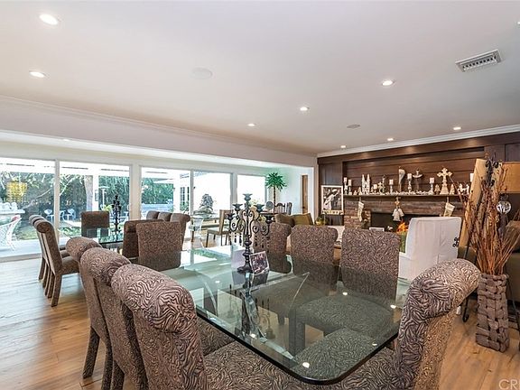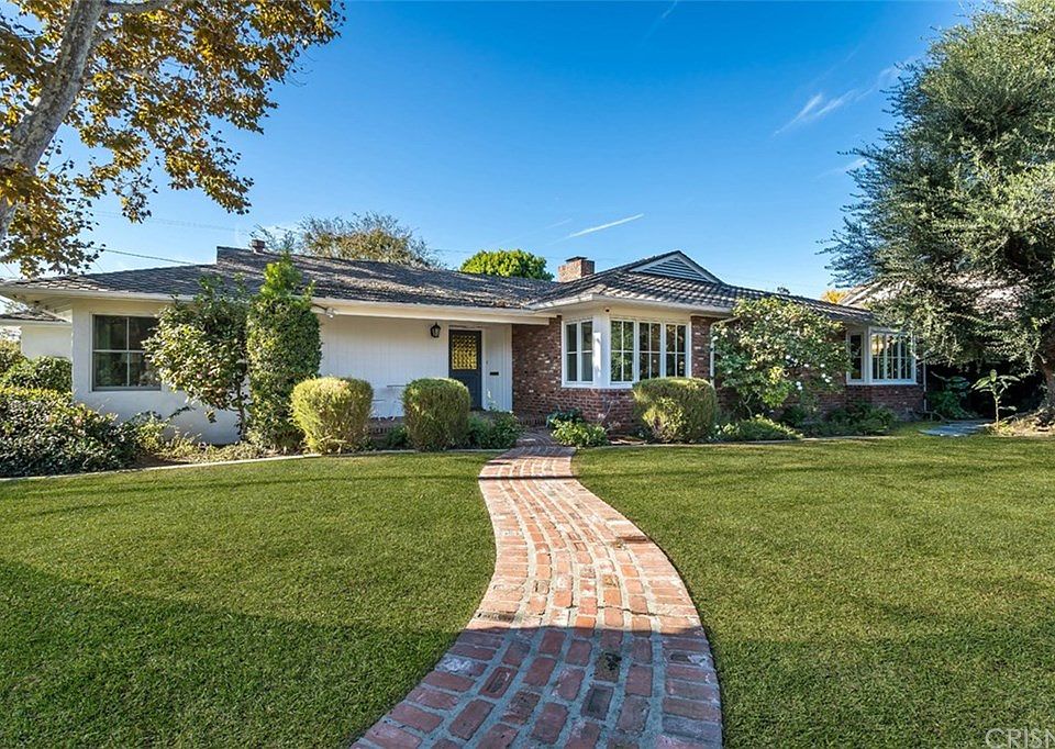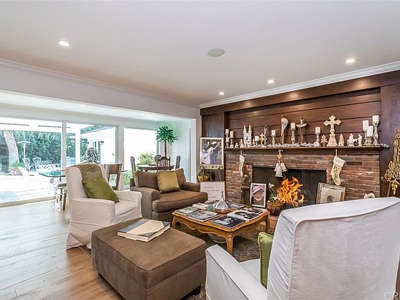 Terrific mid-century custom completely remodeled and renovated in 2018. Single story 5 bed, 6 bath estate situated on a sprawling, ~14,000 sq. ft. corner lot. Walk into an open living space with beautiful wood-burning, brick fireplace & an abundance of natural light pouring in from the wall of glass doors, creating seamless indoor-outdoor living. An entertainer's dream. The chef's kitchen features top of the line glass door Sub Zero fridge and freezer, 6-burner & grill Viking cook top and double ovens, two Viking warmers, butler's pantry and wine cellar. The home has double paned Pella Windows and Italian Oak hardwood floors throughout. The spacious master suite is paired with a generous walk-in closet and glass French doors that overlook the garden and spa. En-suite master bath includes double sinks, jacuzzi soaking tub and separate walk-in steam shower. Private and expansive front lawn with mature trees and manicured Ficus along the front gated fence. The private backyard is where many great parties with over 65 guests have been hosted. With plenty of room for al-fresco style dining, it is equipped with an outdoor barbeque, wet bar, great lighting and speakers for sound system. There is also a spa, considered a "spool" at 10' x 16' with 20 jets, loungers, and waterfall. In addition to all, the home also features a nanny/maid's quarters, as the 5th bedroom with full bath and its own entrance with brick enclosed patio.