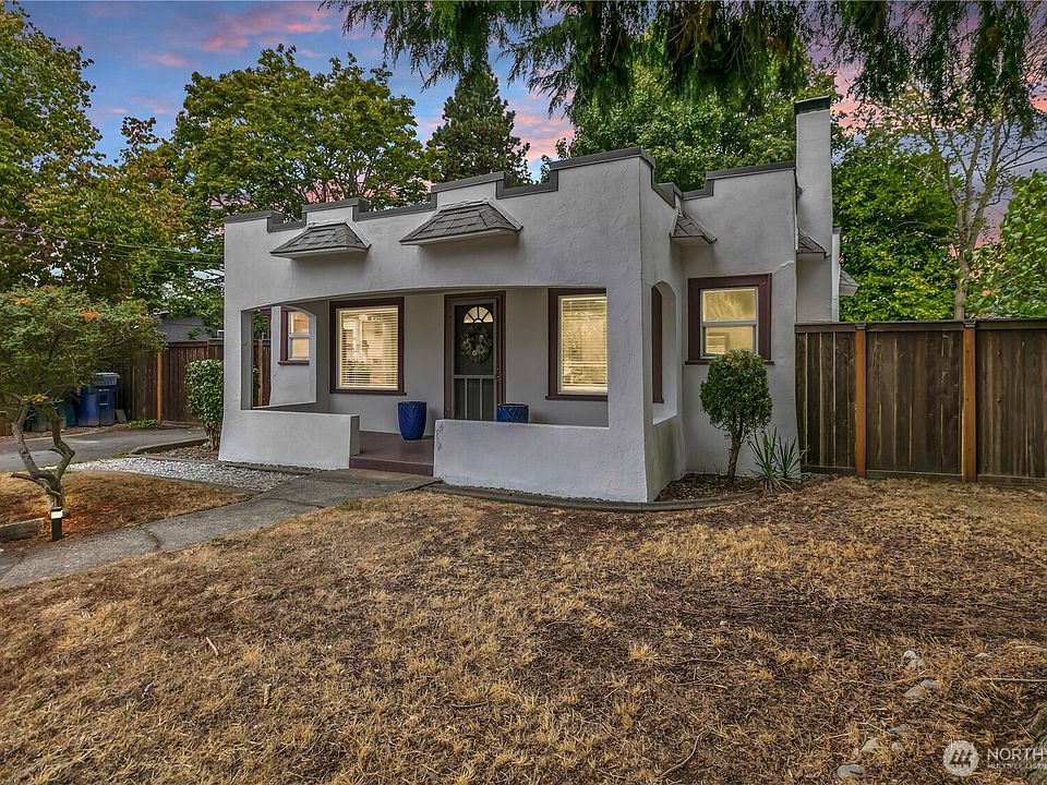 Well-maintained and updated Spanish stucco in North Tacoma! It is a perfect mix of charm and modern as the kitchen and bathroom has been tastefully upgraded. Features include a charming fireplace, covered front porch, clean/dry basement that can be used for storage or a studio/workshop etc as it has inside stair access, fully fenced backyard with shed, and off-street parking for 2+ cars. Full of character waiting for buyers to come enjoy the beautiful neighborhoods of North Tacoma.