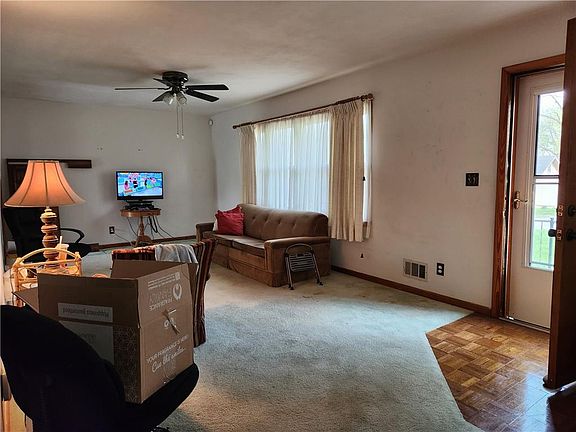 Bring your paintbrush and decorating ideas to this adorable Ranch home! This home has so much to offer with low-maintenance metal siding, thermal windows, newer HVAC, and a newer water heater. The bedrooms are good size & the laundry can easily be moved back to the basement if wanted. The living room has lots of natural light and leads to the kitchen & backyard. The yard is a nice size and fully fenced with a large deck that needs cleaning up. The full basement could be finished or used for storage, along with the large shed. The front porch is amazing too with enough space for seating & flowers to watch the world go by. This home has been cared for by the same owner for over 60 years--- Do not miss this opportunity.