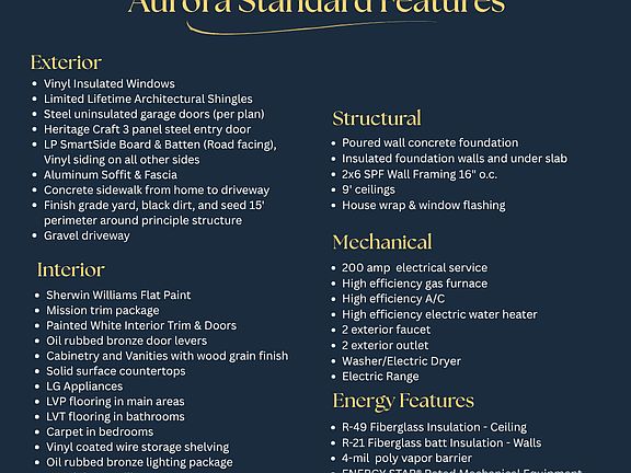 Welcome to 'The Aurora with Garage'! A well thought out plan with everything you need to have year round comfort. Take a look at the included amenities and features. This listing includes 3 lots so plenty of room for toys out outbuildings.