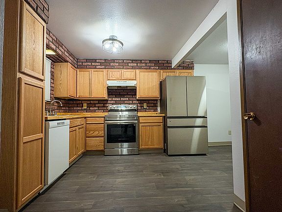 Inside, you'll find new kitchen appliances, modern light fixtures, fresh carpet, and an open floor plan featuring vaulted ceilings in the main living area. Enjoy cozy nights by the wood-burning fireplace or entertain guests in the bright, open living space. The home also includes forced air heating and a 1-car garage for your convenience.