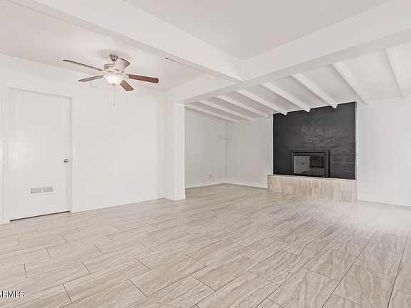 Fantastic Location! Just minutes from Biltmore Shops, Restaurants, & Down Town! Enter into stunning, remodeled, Block Home, with Open Concept Floor plan, Vaulted, Beamed Ceilings, Dramatic Wood Burning Fireplace, & Beautiful Wood-like tile throughout! Kitchen has Upgraded Staggered Cabinets with Crown Molding, Stainless Steel Appliances, Granite Counters, Gas Range with Hood, Walk-in Pantry, & overlooks Great Room; Perfect for entertaining! Enormous Master Bedroom Suite, is split for added privacy, has separate A/C unit, huge walk-in closet, Bath with dual sinks, Quartz Counters, & Shower with tile surround! Upgrades include, NEW A/C,Heating, & Sewer Line, 2023! Dual Pane Windows, Hot Water Tank, Electrical Box,& Bedroom carpets 2021! N/S Facing to enjoy your lush greenery Year Round!