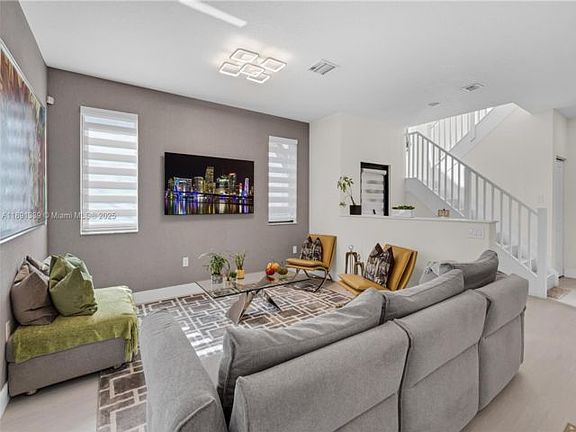 Welcome to this spacious 2-story townhouse with 1,894 sq ft of living space, meticulously maintained and available for rent in the heart of Doral at URBANA. As you enter, you'll find a 2-car garage with tile floors, a beautifully designed kitchen featuring a breakfast island, a dining area, a guest bathroom, and a bright, open living room. Upstairs, you'll enjoy vinyl floors throughout. The second floor hosts a convenient laundry room, and three generously sized bedrooms, including an oversized master suite with a private balcony and a spacious walk-in closet. This home is available partially furnished. Enjoy resort-style amenities and a prime location close to shopping, dining, and entertainment. Don't miss out on this exceptional opportunity! *Available December 1st*Courtesy of The Lab Realty Group, LLC (Listing 3319822 Confirmed 10/9/2025)
