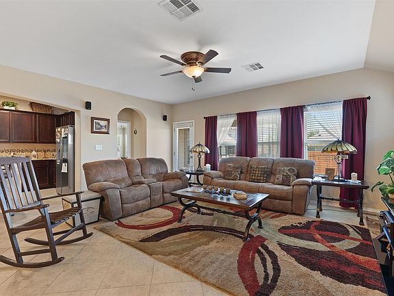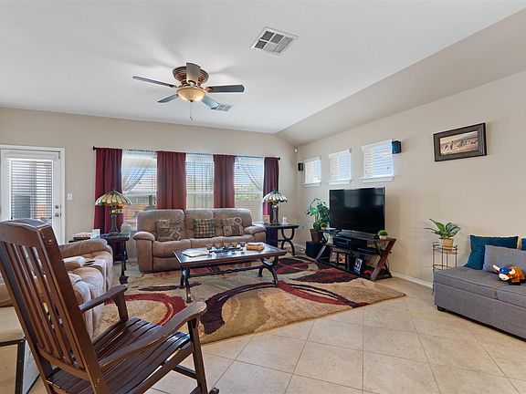 A charming single-story home nestled in a serene Pflugerville neighborhood, with access to the beautiful Lake Pflugerville. A clean walkway guides you to a secluded front porch, the perfect spot to pause and appreciate the peaceful surroundings. Inside, the open layout living area shines with high ceilings, abundant natural light, and tile flooring throughout the common areas. The spacious living room flows seamlessly into the kitchen and dining area, complete with a ceiling fan and direct access to the covered patio and fully fenced backyard. A storage shed in the yard provides ample space for outdoor gear and tools. The kitchen is a haven for cooking enthusiasts, featuring granite countertops, recessed lighting, stainless steel appliances, a pantry, and plenty of cabinet space for all of your kitchen needs. A long bar provides extra seating and overlooks the kitchen. The primary bedroom is a serene retreat, boasting a high ceiling, ceiling fan, and several windows. The en-suite bathroom is complete with dual vanities, a deep soaking tub, and a walk-in shower. The perfect place to unwind after a long day. The secondary bedrooms offer comfortable spaces for rest, each equipped with a ceiling fan and walk-in closet. This neighborhood offers a playground, lake, and trails for walking, hiking, and biking, providing something for everyone. With its convenient location near schools, restaurants, and shops, and easy access to HWY 130, this home is perfectly positioned for a relaxed and active lifestyle.