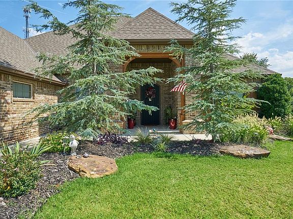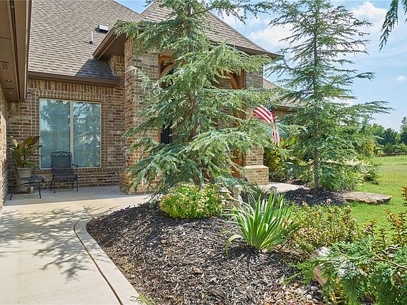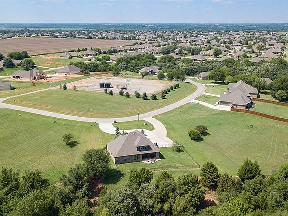 Gorgeous Upscale home in quiet gated Community. 7 min from Mustang-20 min from Bricktown. Stunning terraced landscaping sitting on 1.5 Ares. Room for shop that could be added into price of home and built before closing. Spectacular views from back covered patio with fire pit. Envision an infinity pool on this lot, certainly the room! Bonus room could be optional 4th bedroom with full bath /shower/ walk in closet. Top notch kitchen with high end induction appliances boils water in 6 sec. Stained concrete floors going with the flow of the hickory wood floors and plush carpet in bedrooms and bonus. Water softener, alarm system, sprinkler system. Inground storm shelter built enabling you to keep vehicles in garage while seeking your own protection as well. This home has it all plus !