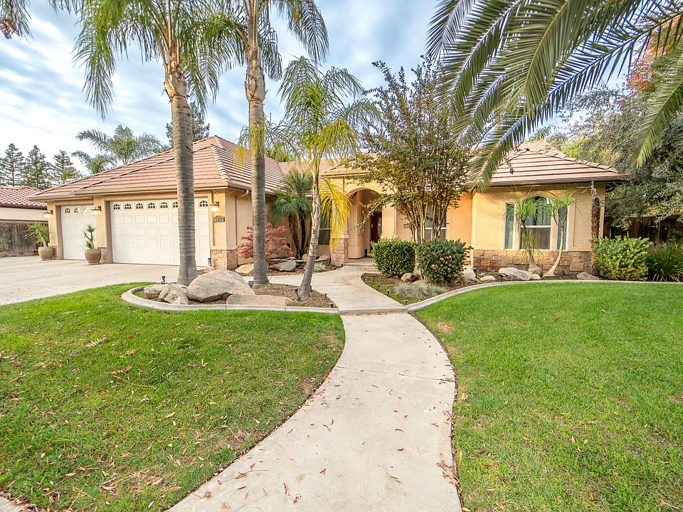 Welcome to this 4 bedroom +office, 2.5 bath home on 1/3 of an acre corner lot in gated Cobblestone 1. This home has so much to offer. Walk through the front door and enjoy the open floorplan with vaulted ceilings and a corner fireplace. The kitchen looks out to the dining and living room and is nicely upgraded with granite counters, stainless steel appliances, a walk-in pantry, upgraded laminate flooring and a large wrap around barstool area. The home offers a split floorplan with 3 spacious guest bedrooms on one side. One of the guest bedrooms includes a private half bathroom. The other full guest bathroom is situated between the guest bedrooms and has been nicely remodeled. The master is on the opposite side of the house and is nicely laid out with dual vanities, jetted tub, walk in shower and his/her walk-in closets. Besides the 4 bedrooms the home also has an office with dual doors that can be utilized as an extra room to suit your needs. Step out back to your own oasis with a Pebble Tec Pool containing a rock waterfall, plenty of grass area, firepit, outdoor barstool area, large, covered patio and RV parking. The 3-car garage allows for extra storage needs along with a pull-down ladder adding plenty of attic storage. All this situated on an established cul-de-sac street.